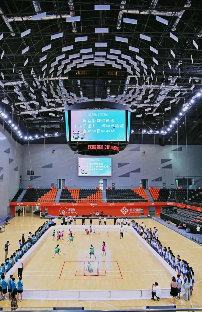 软式曲棍球又名地板球、旱地冰球,是一项集体对抗性球类运动,于1997年首次进入世界运动会。比赛用球仅重23克,在硬质地面的反弹效应下,击球瞬间速度可达205公里/小时以上,是世运会中球速最快的项目之一。软式曲棍球比赛场地设于新都香城体育中心篮球馆,该场馆由大运会篮球训练馆改造而来。成都世运会软式曲棍球项目设置男子团体和女子团体比赛,共有来自11个国家和地区的男、女各8支队伍参赛,共举行36场比赛,角逐2枚金牌。中国队作为东道主,在男子团体项目中与芬兰、捷克、加拿大队同属B组。